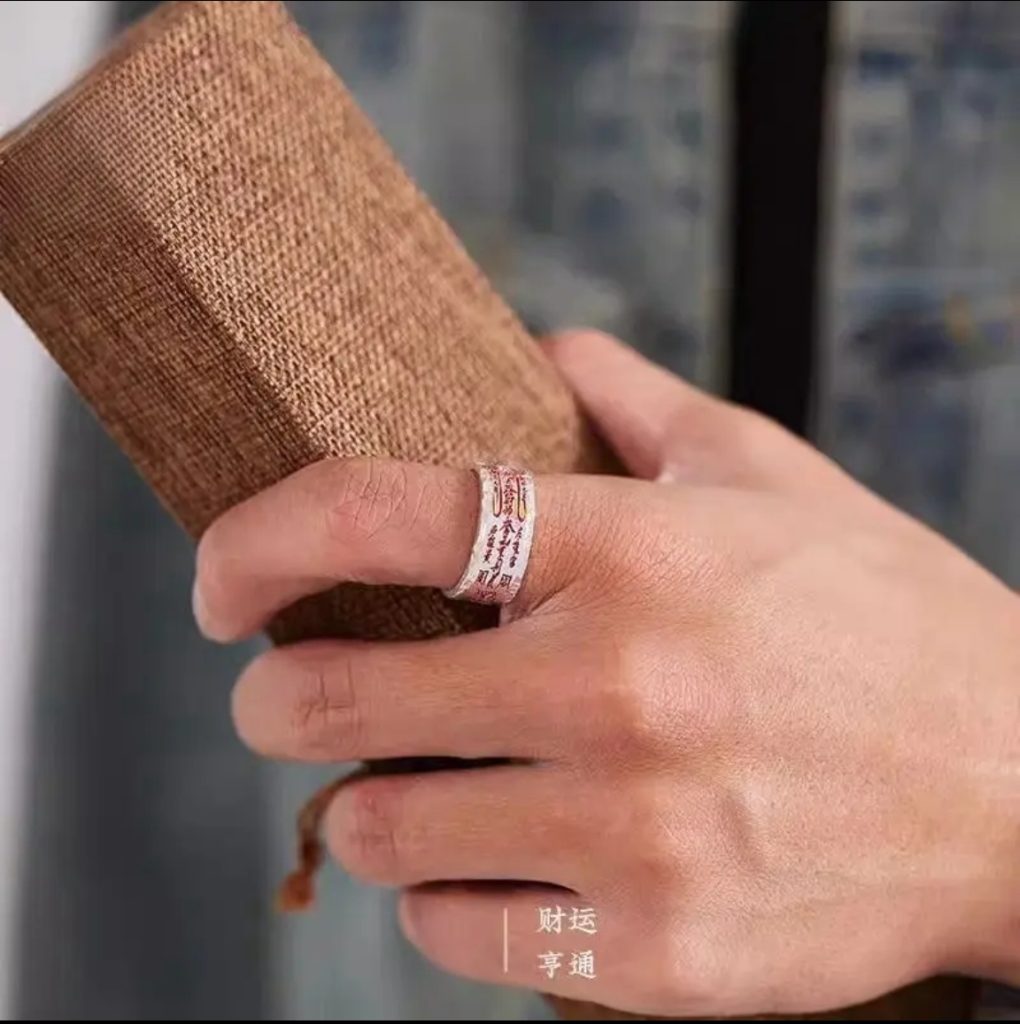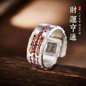 Not just a ring, it’s a wealth charm worn between the fingers In Taoist culture, the index finger is regarded as a channel connecting opportunity and action. This “Fortune Prosperous” full silver ring, specially designed for young Taoists, features powerful Feng Shui talismans engraved on it to help you gather energy and achieve a smooth financial path.